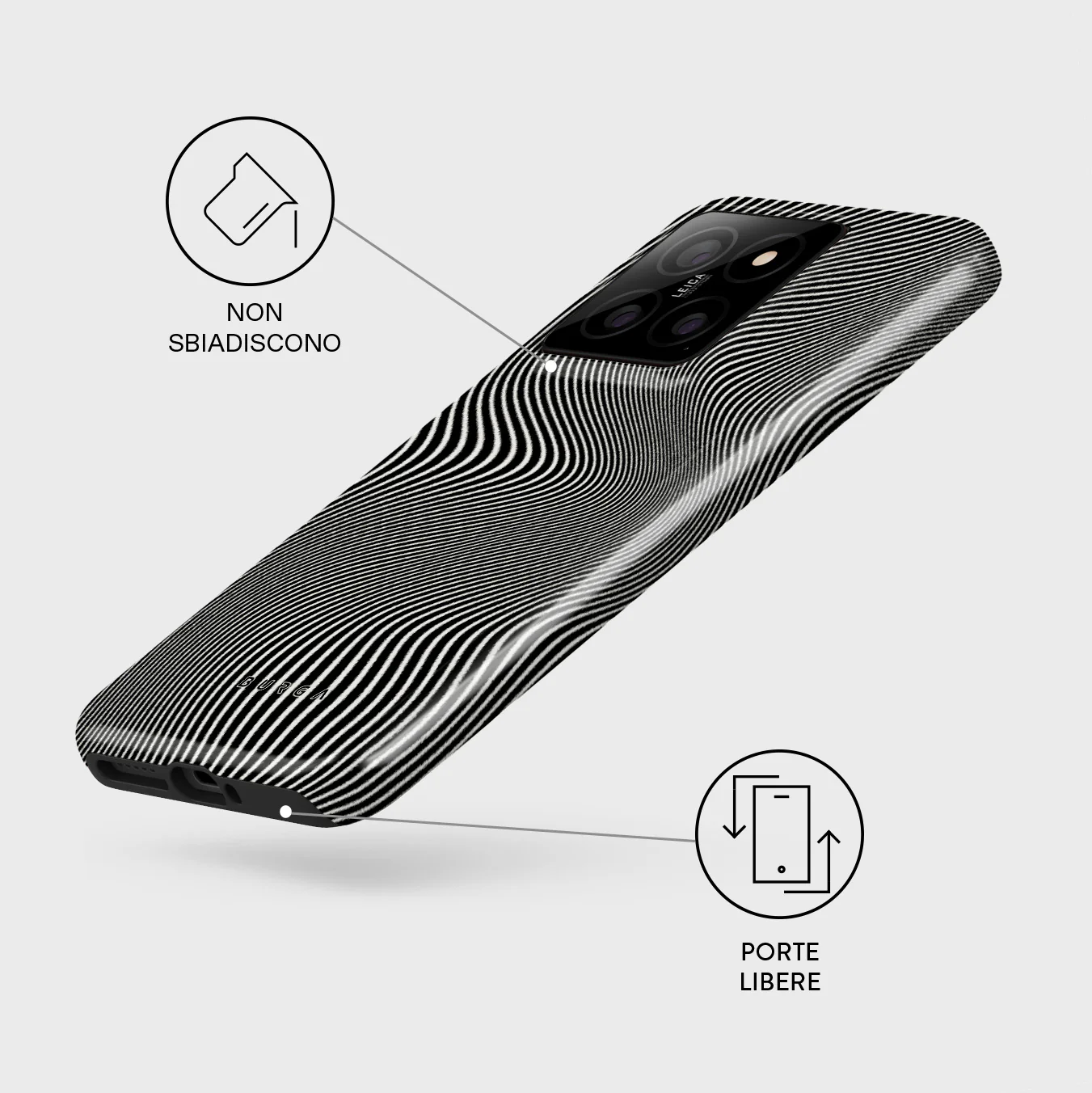 • Attenzione: Il design è stampato – non è in rilievo né texturizzato.