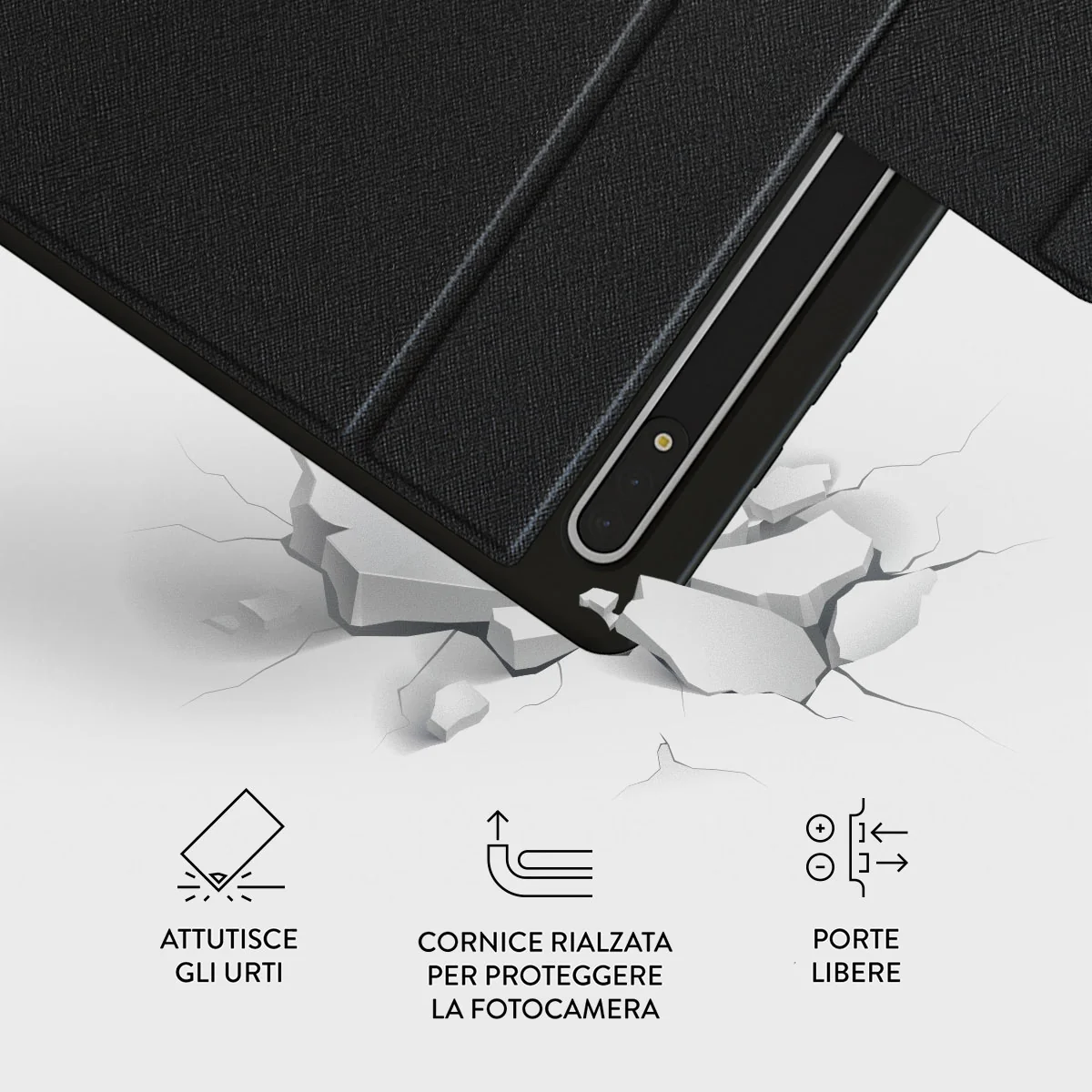 - Posiziona l’Samsung Galaxy Tab nell’angolazione che preferisci utilizzandola anche come supporto, per digitare o visualizzare contenuti in completa comodità.